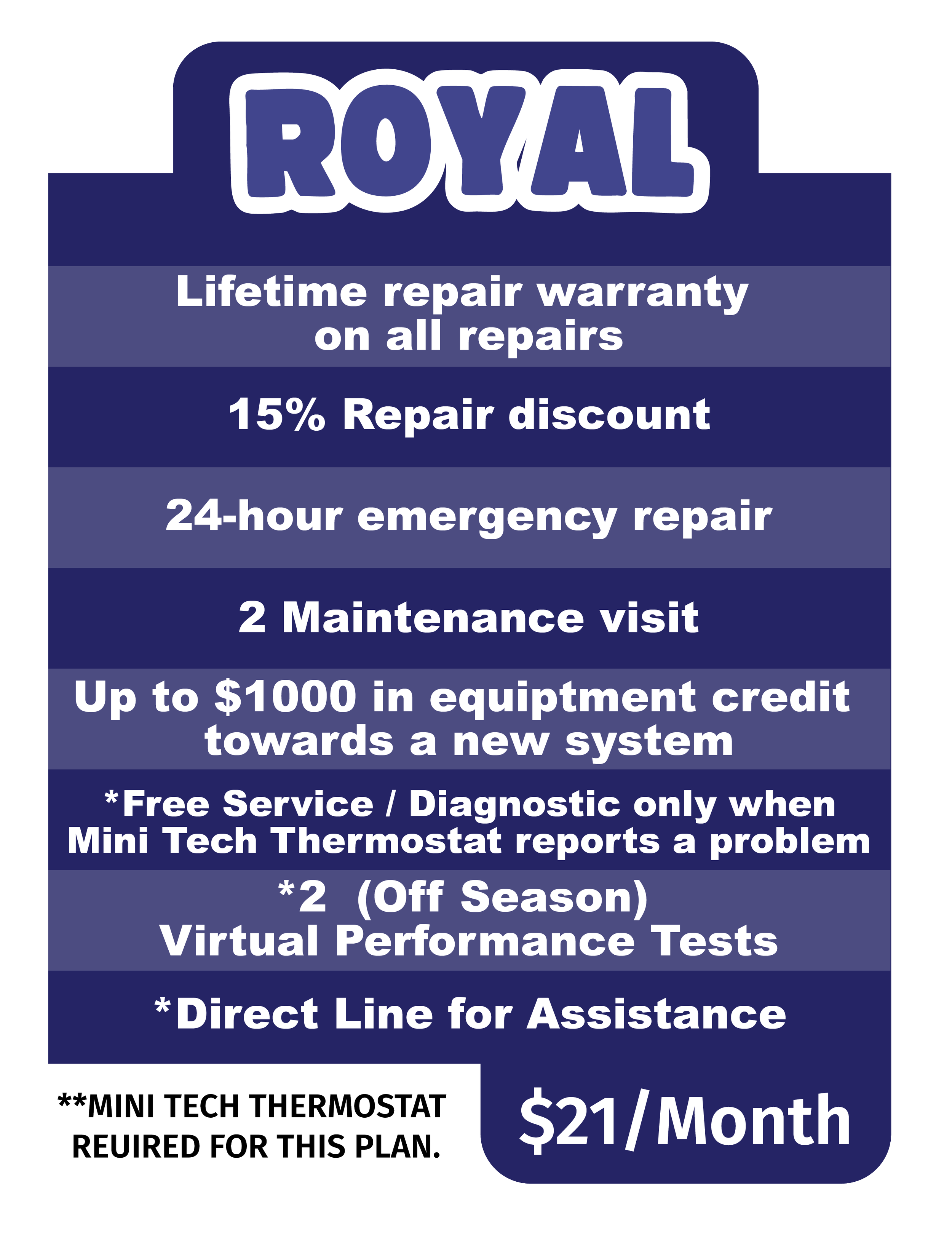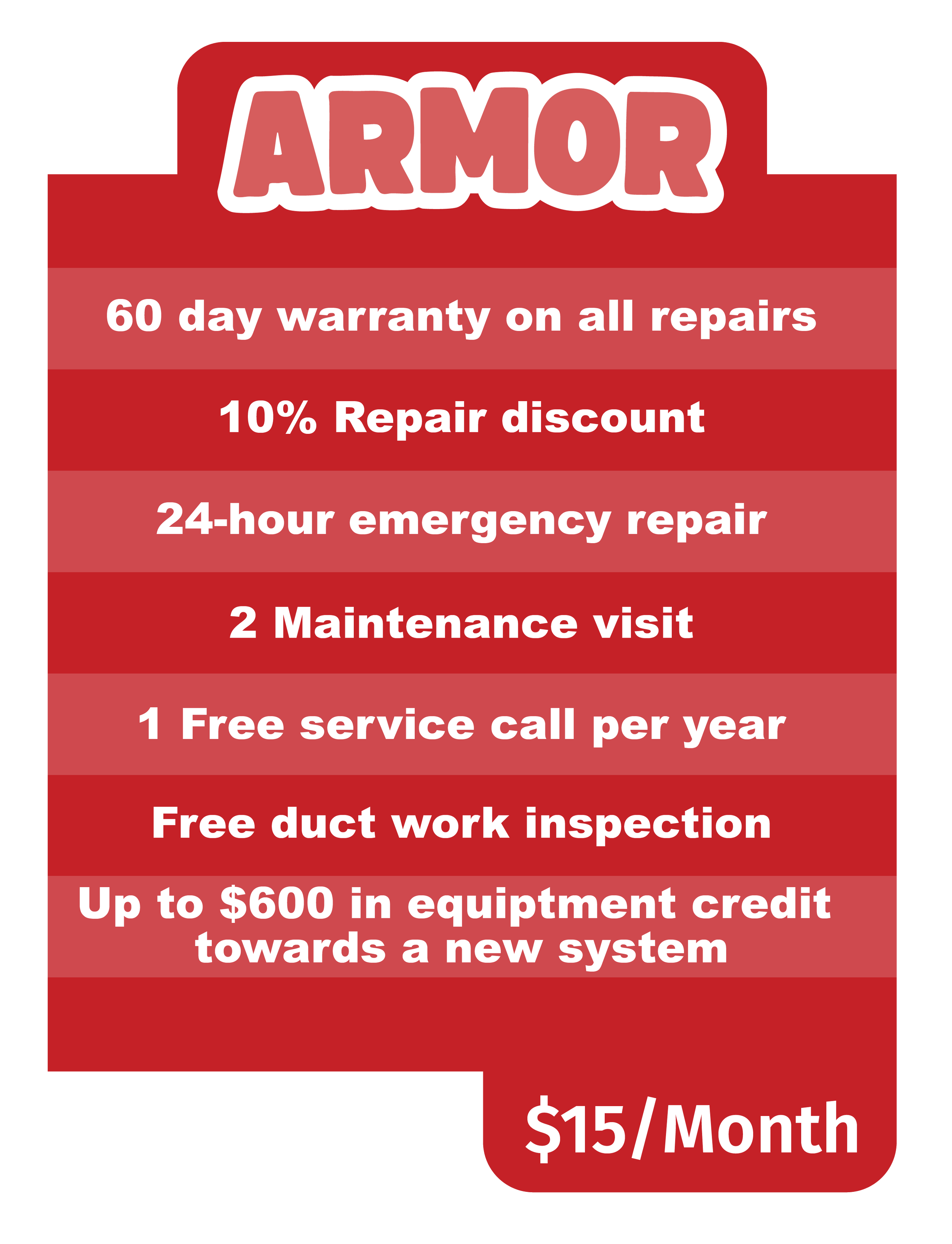 At Knights Heating and Cooling, we offer three Tiers of maintenance plans through our Knight’s Comfort Club, allowing you to choose the option that best fits your budget and needs. Stay ahead of potential issues and enjoy peace of mind with a plan designed to keep your system in top shape year-round.